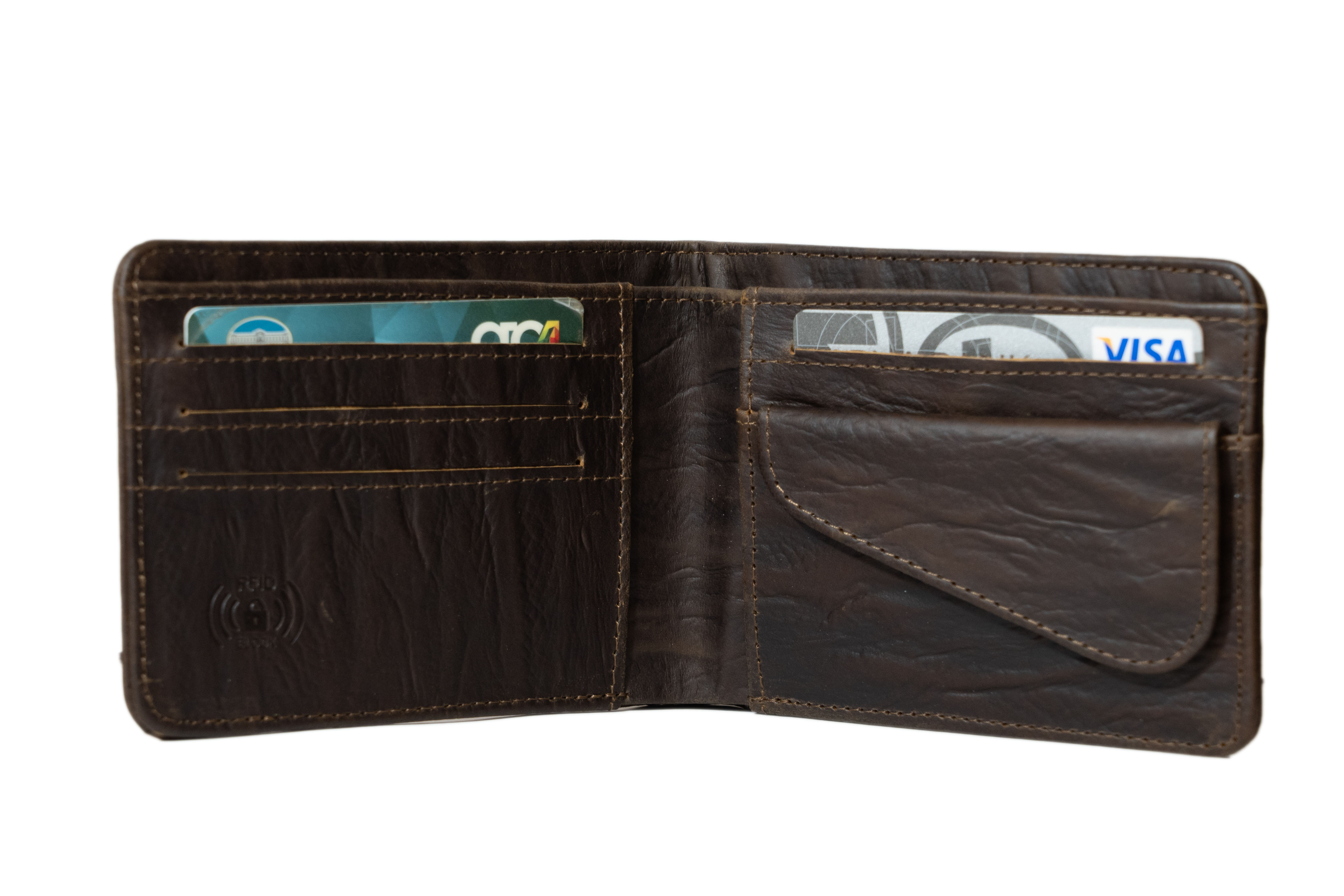 Wallet and credit card case, serie Waves, high quality Calf leather. 4 card compartments with RFID protection, room for coins and paper money. Dimensions 12,50 x 9,50 cm